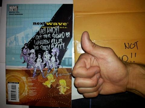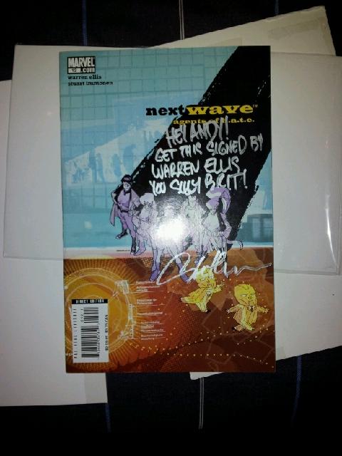 I can't actually remember everything I got signed by Ellis - apart from Gravel #1. Gravel #1 sticks out in my mind, because it's one of my favourite Ellis books and I already had Mike Wolfer's signiture on it. I'm pretty sure I would have got volumes 1 and 3 of Freakangels signed, since they've both been signed by Paul Duffield. But, I think I may have also got the big collection of Nextwave signed as well. Nextwave was awesome! I think I may have bought this during one of the NYCCs, but got round to reading it just before seeing Ellis at London MCMExpo.