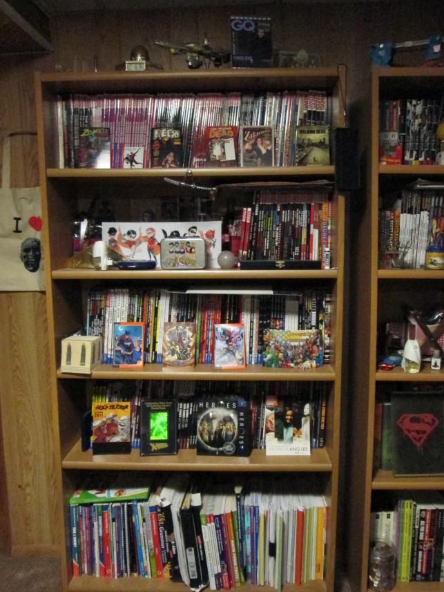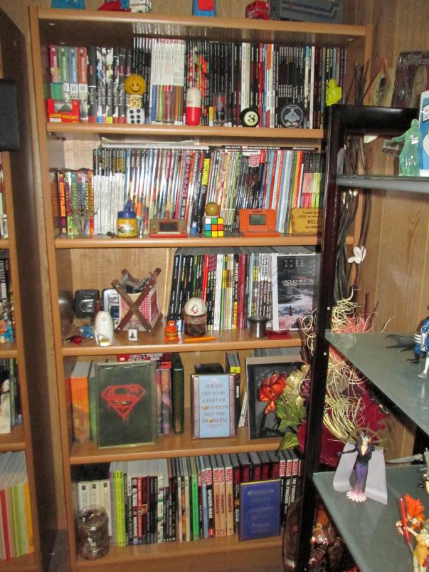 The last major things I have left to do is hang up my cels, a few con photos and arranging my mess of DVDs in the center. Additionally, I'm going to set up a bed there and my comic room will double as a guest room.